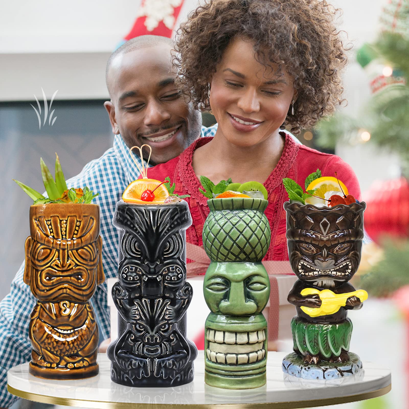 - [HIGH QUALITY]:These tiki mugs made with the sturdy ceramic, sturdy, not easily broken.Moreover, as the tiki glasses are glazed they are much longer-lasting with their colors intact.